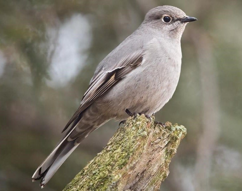 A bird of western-mountain forests, the Townsend’s Solitaire is a slender songbird mid-way in size between the showy bluebirds and red-breasted robins that are its close relatives in the thrush family. Its quiet, grayish plumage is complemented by striking white eye-rings, buffy wing patches, and outer white tail feathers that flash when the bird takes flight.